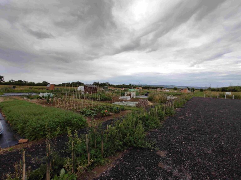 The site contains 30 allotment garden plots in three rows of 10. There are made-up paths for access and grassed pathways between plots in each row.  We have large compost bays as part of our sustainability scheme for the whole Pear Tree Fields site. Water is available using dip-in tanks spaced throughout the site and there is a large car parking area, which is also used by other visitors to Pear Tree Fields.